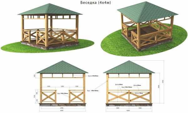 Ниже приведены несколько чертежей, которые помогут вам наглядно разобраться с конструкцией беседки.