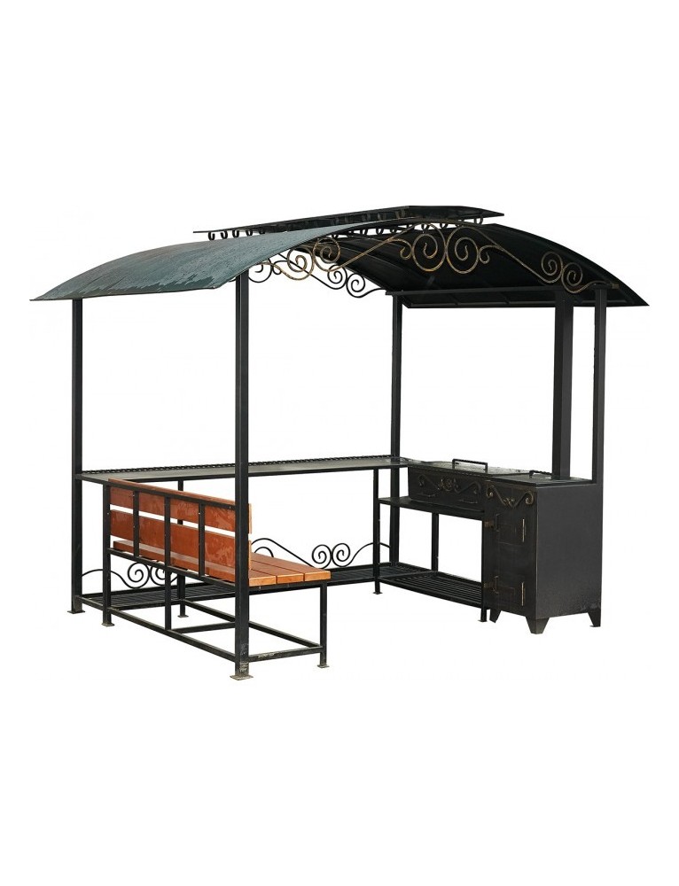 - Комбинированный вид беседки с использованием дерева и кованого металла.