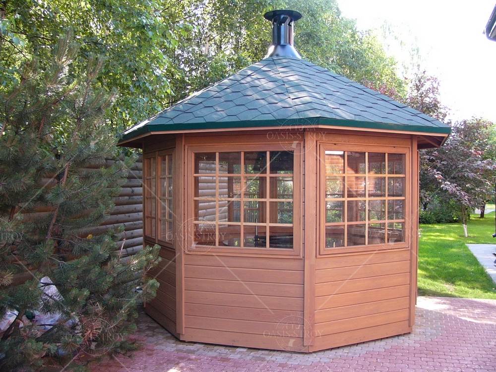 красивые дачные беседки из дерева с печью, закрытые варианты построек