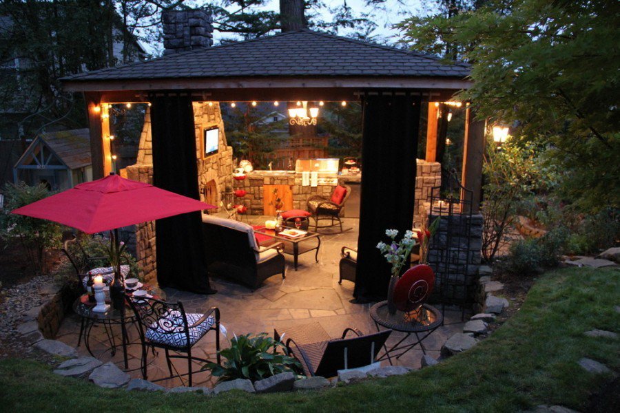 Выстроив беседку, нужно сделать ее уютной, продумав все до мелочей.