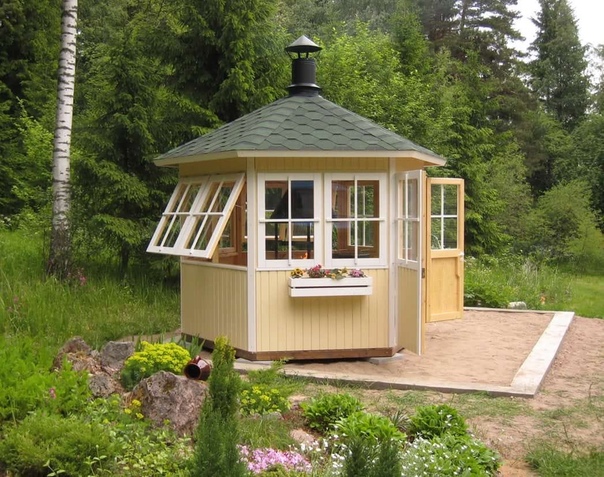 Такая беседка займет немало места, но ее функциональность может поспорить даже с домом: здесь можно приготовить пищу, отдохнуть, поработать за ноутбуком, заняться вязанием или поиграть в настольные игры, отметить праздник с родными и друзьями.
