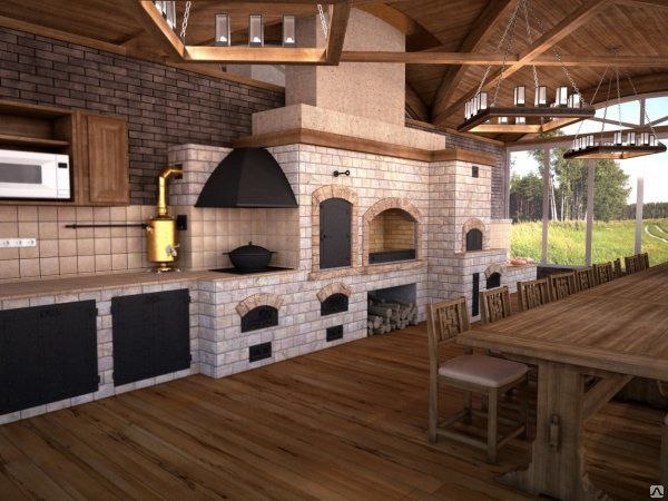 - Удобная, хорошо оснащенная беседка с доминирующей зоной кухни.