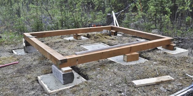 Хотя и тут есть выход – простой и быстрый. Вот он на фото ниже. Можно углубить в землю не сами столбы – а металлические подпятники с длинной и острой нижней частью. И уже на них поставить деревянные опорные брусья (как на фото ниже).