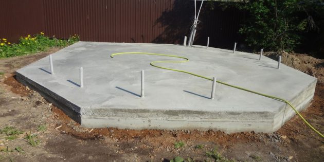 А еще вы можете заранее своими руками сделать деревянный помост – под будущую беседку. И тогда столбы на таком деревянном основании крепятся на обычные квадратные подпятники.