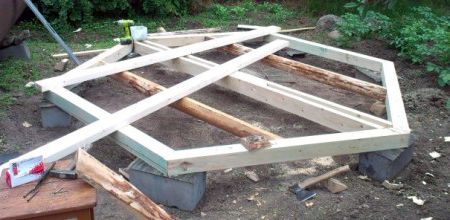 КАРКАС дачной беседки – НА ДЕРЕВЯННОМ ПОМОСТЕ.