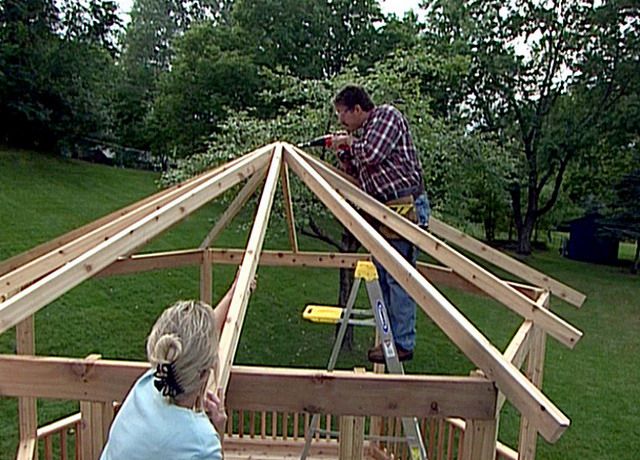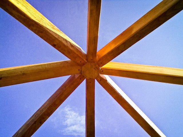 - И в пятой статье — будем делать округлые ШЕСТИГРАННЫЕ беседки со сложным устройством КОНУСНОЙ крыши.
