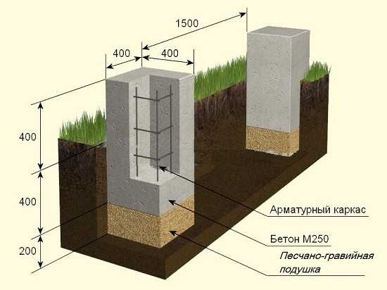 - Выкапываются приямки под столбики, которые располагают по всем 4-м углам будущего строения, а также на пресечении диагоналей и в центре строения. Выкапываем 9 ямок глубиной около 50 см. Между столбами следует сохранять дистанцию в 1,5 метра, сверху покрывается конструкция слоем ПГС – 0,2 м.