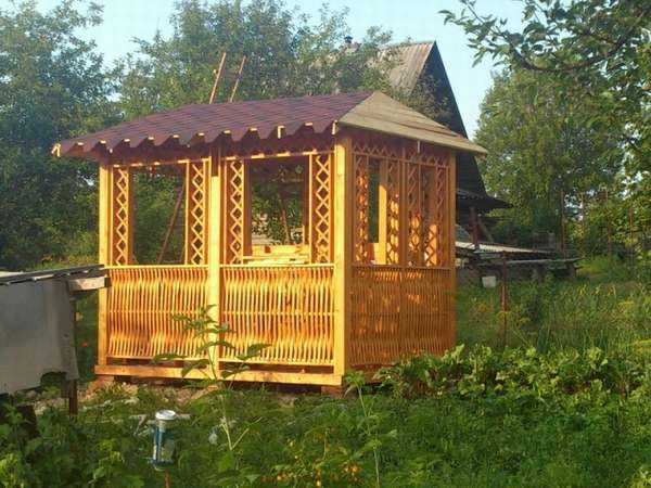 Возводим стены для беседкиНа сегодняшний день каждый владелец участка может выбрать среди большого ассортимента материалов нужный, который послужит обшивкой нашего сооружения: