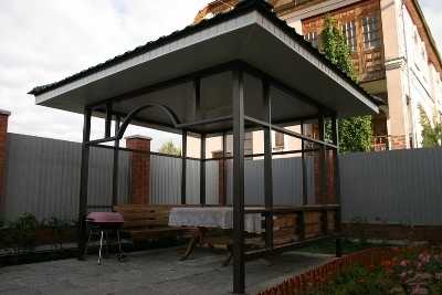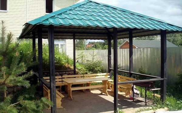 Обратите внимание! При наличии навыков сварочных работ изготовление беседки из профилированной трубы не составит большого труда.