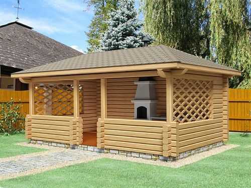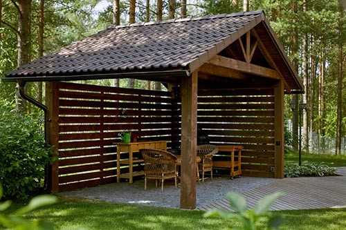 Сооружение защитит от погодных условий и позволит приготовить пищу на открытом огне, разместив внутри беседки барбекю или передвижной мангал.