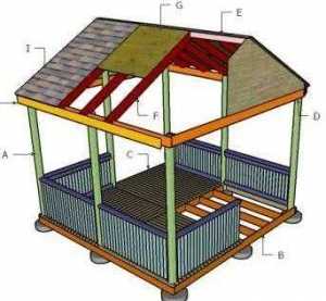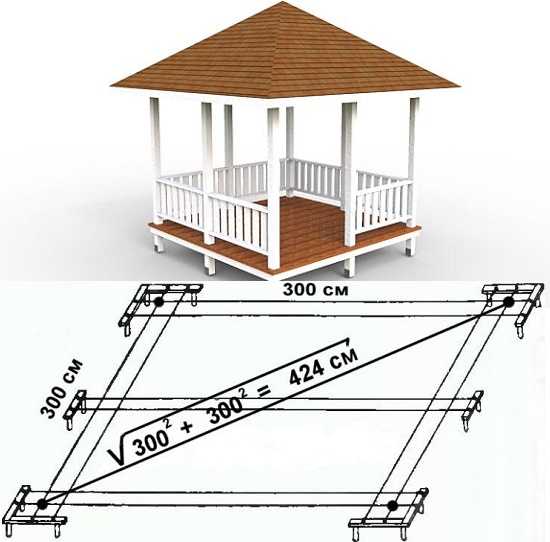 Простая беседка 3х3, проект конструкции на столбчатом фундаменте