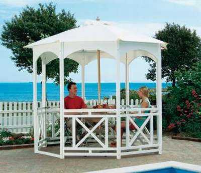 - компактность беседки позволяет вписать ее почти в любой дизайн участка, даже если она будет расположена в его центральной части или пристроена к ограждению;