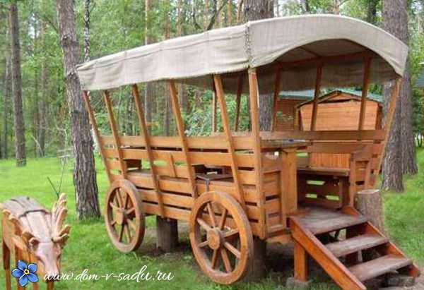 От деревенского жителя осталась телега? Почему бы не сделать ее основой для необычной зоны отдыха?