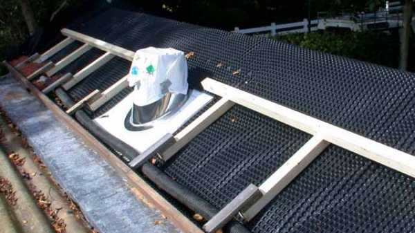 Далее на доски укладываем специальную гидроизоляцию и делаем сетку из бруса. Эта сетка будет выполнять роль арматуры и препятствовать сползанию почвы по скатам крыши.
