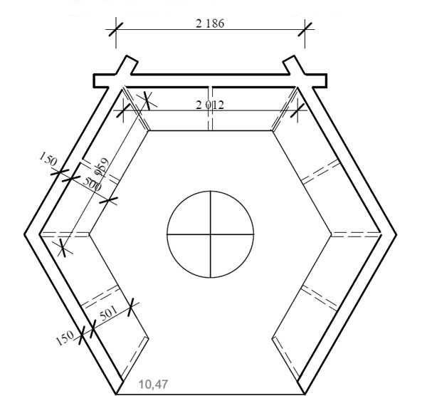 так и многоугольной формы (шести или восьми). Ниже приведен чертеж такой беседки.