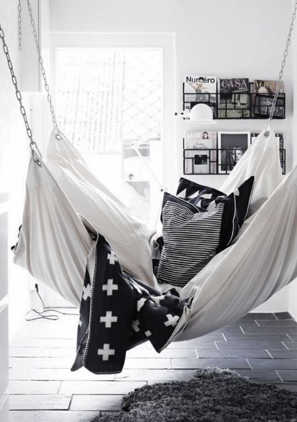 Стильный мягкий гамак дополняет современный интерьер