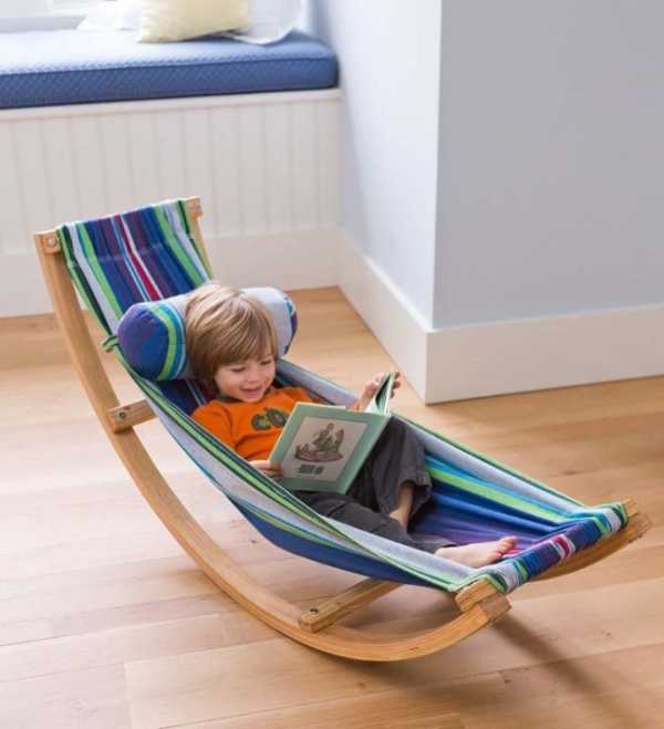 Интересная модель выполняется в виде качелей. Выпускаются изделия различных форм, но все они имеют одну точку крепления. Это позволяет их раскачивать. Такой детский гамак понравится малышам и взрослым членам семьи.