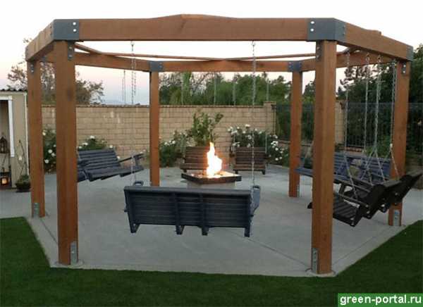 Беседка с качелями и кострищем