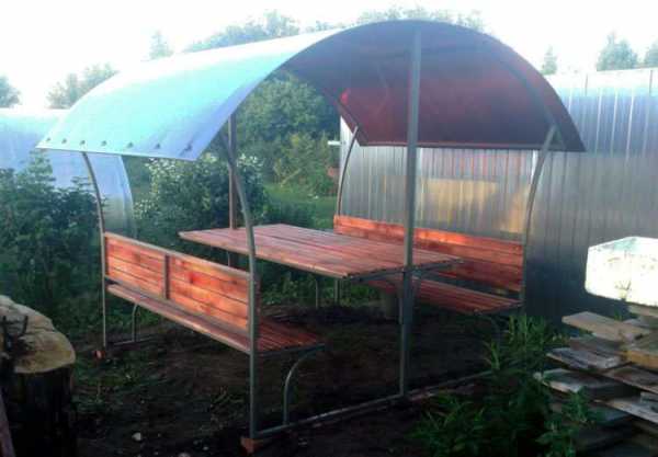 Фото: беседка из профильной трубы, дерева и поликарбоната