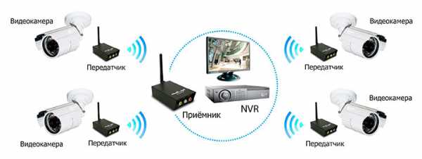 Беспроводной комплект видеонаблюдения может состоять из нескольких видеокамер с передающим модулем, причём некоторые системы позволяют наращивать количество камер. При установке беспроводных камер следует помнить, что кирпичные, а тем более бетонные стены заметно снижают уровень видеосигнала. Кроме того мощные электроустановки, дизель-генераторы, а также некоторые контрольно-измерительные приборы могут вызывать помехи и искажения видеосигнала.