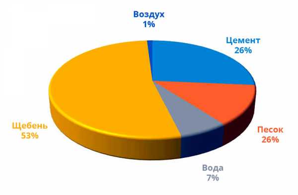Для производства ходовых марок бетона используют цемент М400 и М500 в определенных пропорциях с обогащенной песчано-гравийной смесью и водой.