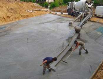 Заливка плитного фундамента намного отличается от заливки ленточного. Количество необходимого бетона определяется умножением параметров плиты. Поскольку плита является цельной, то требуется заливка сразу всего материала.