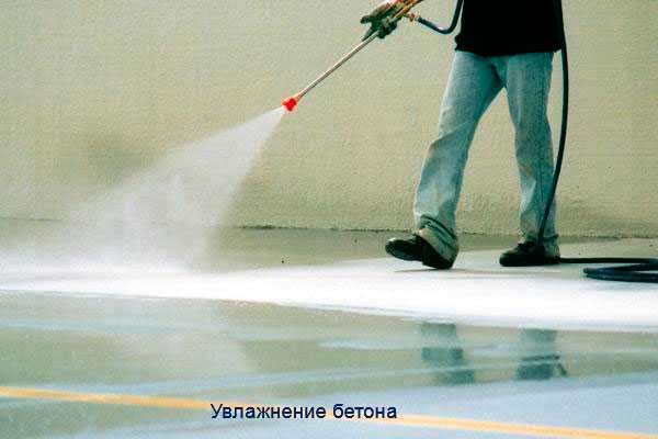 - постоянно увлажнять заливку, например, поливать поверхность водой из шланга со специальной рассеивающей насадкой;