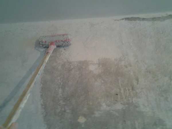 Грунтовка стен необходима для улучшения сцепления штукатурки с бетоном.