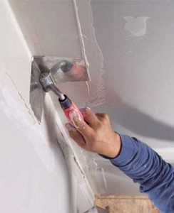 - В первую очередь необходимо удалить со стен явно видимые изъяны – наплывы, бугры и т.д.