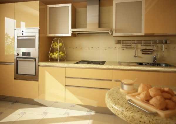 Маленькую кухню рекомендуется сделать светлой. Зрительно увеличить пространство поможет использование теплых песочных оттенков. Гарнитур с глянцевыми фасадами светло-бежевого цвета – хороший выбор. Лучшим примером главенствующего стиля станет любое направление, подчиняющееся минимализму.