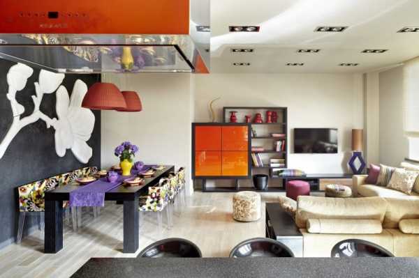 - Оранжевый. Яркий цвет освежит интерьер. Используют броские акценты в виде подушек, ваз, часов или вводят апельсиновые ноты при формировании общей схемы оформления.