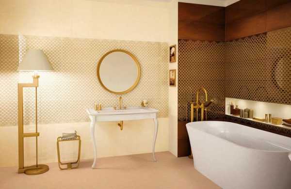 Оформление ванной с использованием песочных тонов – хорошее решение. Светлые оттенки бежевой гаммы способны увеличить пространство. Карамельные, соломенные цвета больше подойдут для просторного помещения. Декор реально составить, используя коричневый, лососевый, хаки и даже чёрный подтоны. Дополнительные цвета чаще вводят локально. Хотя песчаные тона тоже могут использоваться только для декора. Оригинально смотрится сантехника под латунь и бронзу. Среди стилей выбирают классику, минимализм, модерн, этнические направления (итальянский, японский, восточный дизайн).