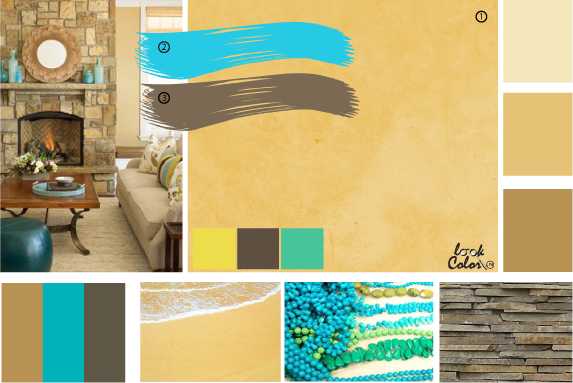 Сочетание цветов: песочный и синий — одно из самых приятных, так как именно оно ассоциируется с тропическим пляжем: бирюзовая водя, голубое небо. Это выраженный холодно-теплый контраст, а в случае с синим и световой резонанс. Возьмите на заметку интересные комбинации с серо-голубым, цветом яйца дрозда, темно-бирюзовым, берлинской лазурью, темно-синим.