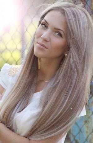 Этот тон не зря называют холодным, так как для него не характерно наличие желтизны. Вместо нее на волосах формируется определенный налет инея или седины. Пряди такого тона отлично выглядят на девушках с бледными кожными покровами или очень смуглой дермой. Что касается глаз, то они могут быть голубыми или карими.
