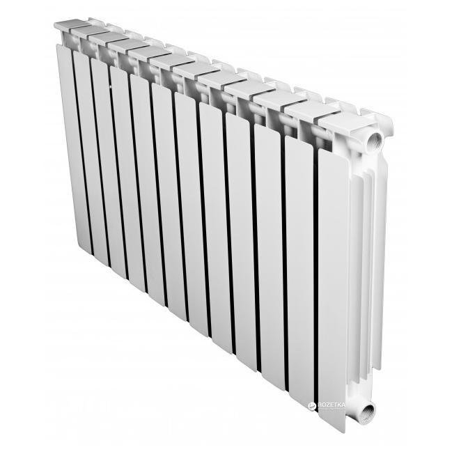 Так как сердечник в биметаллических радиаторах выполнен из стали, то они легко выдерживают не только давление воздуха, но и гидроудар. - Высокая теплоотдача – внешняя часть корпуса выполнена из алюминия, который характеризуется высокой теплоотдачей. При расстоянии между осями 50см, показатель теплоотдачи составляет 190Вт.