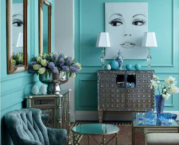 Благородная бирюза, водные оттенки аквамарина позволяют создавать различные сочетания. Бирюзовые оттенки активно используется, как в старинном, так и в современном дизайне комнат.
