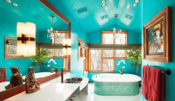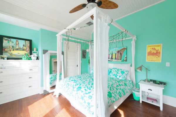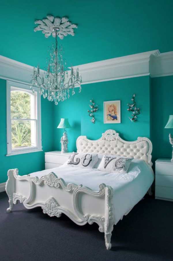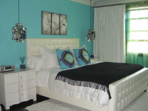 Бирюзовый цвет в интерьере спальни, ванной и других комнат