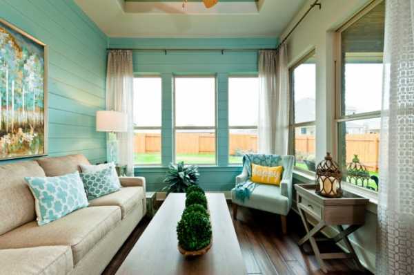 Интерьер гостиной в бирюзовом цвете поможет избавится от усталости, приступов агрессии и стресса.