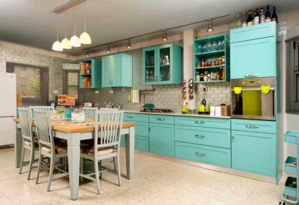 Мы категорически отбрасываем мнение о том, что бирюза испортит интерьер кухни. Напротив, кухня в бирюзовом цвете очень красиво смотрится, особенно стены.
