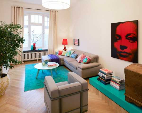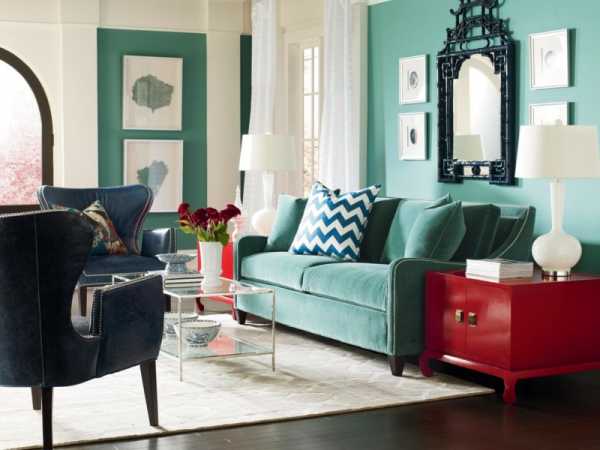 Гармоничное сочетание бирюзового цвета с другими цветамиБирюзовая гостиная