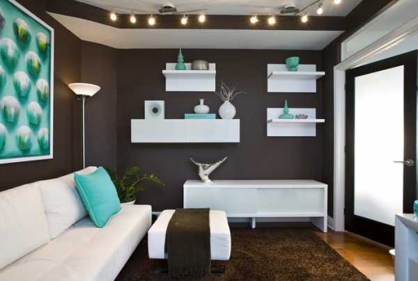 Ну а как же быть с темными цветами? Свои варианты здесь тоже есть. Советуем использовать классические сочетания: черный + бирюзовый, темно-коричневый + бирюзовый, шоколадный + бирюзовый. Чаще всего в темных тонах подбирают мебель, а бирюзовый цвет используют для декорирования.
