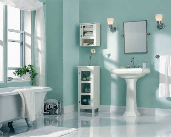 Если основной фон ванной комнаты – белый, тогда бирюзовый используйте для расстановки акцентов.