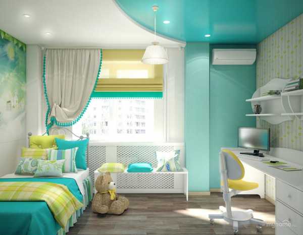 В детской много ярких игрушек, рисунков. Здесь уместны любые яркие цвета. Бирюзовый цвет подойдет для детской мальчика или девочки. Для мальчика это будет морская тематика. Одну стену можно оформить фотопанно с видом на океан. Бирюзовые волны и белыми пенными гребешками зададут тон для остального убранства детской.