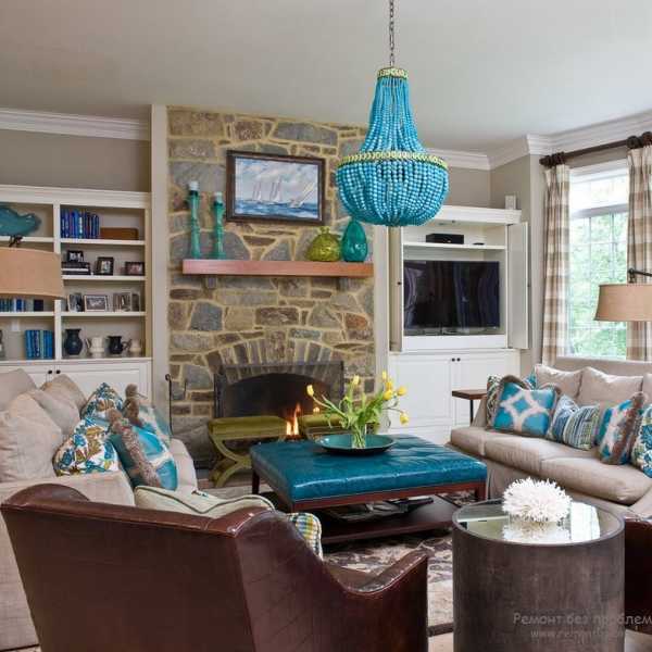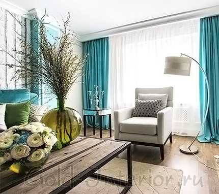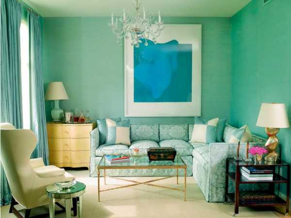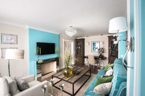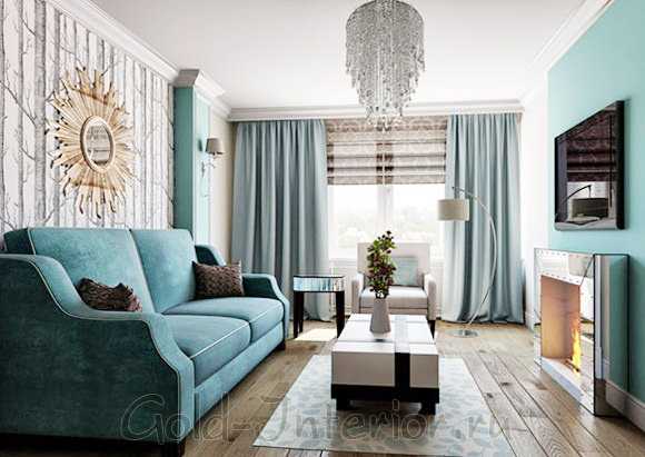 Бирюзовый цвет в интерьере гостиной: идеи, сочетание цветов