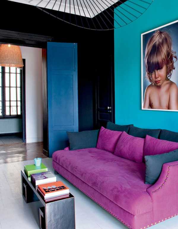 В сочетании нескольких холодных цветов следует один из них делать более ярким, насыщенным, другие – приглушенными, более бледными. Один из них можно сделать основным, скажем, на обои, другие включать в интерьер в виде ярких пятен (диван), покрывало и шторы, элементы декора.