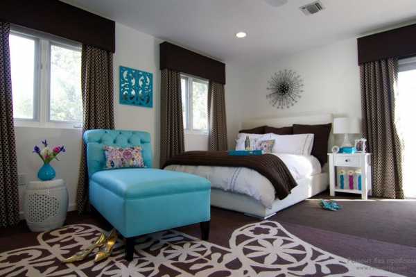 Если грамотно использовать бирюзовый цвет в интерьере спальни, можно получить расслабляющую умиротворяющую атмосферу, способствующую получению полноценного отдыха.