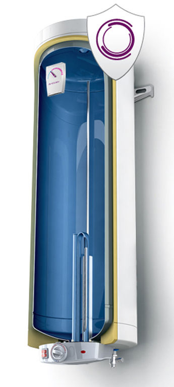 В стандартных водонагревателях ТЭН (трубчатый электронагреватель) размещается непосредственно в баке с водой и греет непосредственно её, а в бойлерах с сухим ТЭНом он находится в специальной трубке, запаянной с одной стороны. Таким образом, контакт самого греющего элемента с водой исключен.