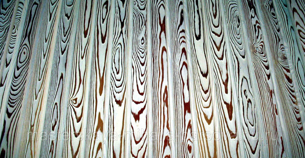 Эта технология известна у нас сравнительно недавно, она позволяет искусственно состарить древесину, придав ей особую фактуру, рельеф и цвет. Природный процесс старения занимает длительное время, и результат очень сильно может зависеть от условий, в которых он протекает. Также этот процесс происходит крайне неравномерно – более рыхлые слои древесины по достижению определенного состояния высыпаются, плотные – остаются, поверхность древесины изменяет цвет и становится рельефной.