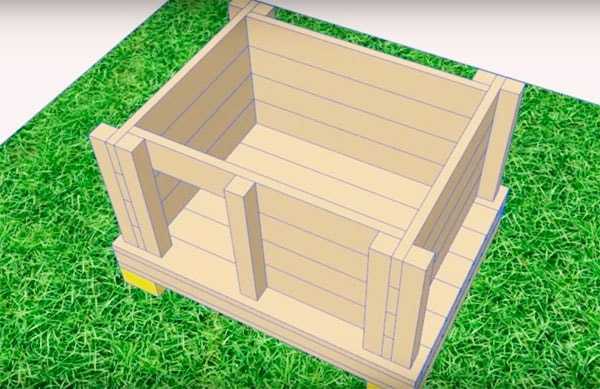 На следующем этапе из брусьев сбивают каркас стен и основание