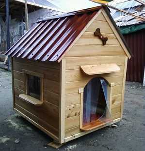 - если сооружается будка для большого пса, то ее устанавливают внутри специального вольера для четвероногого питомца;